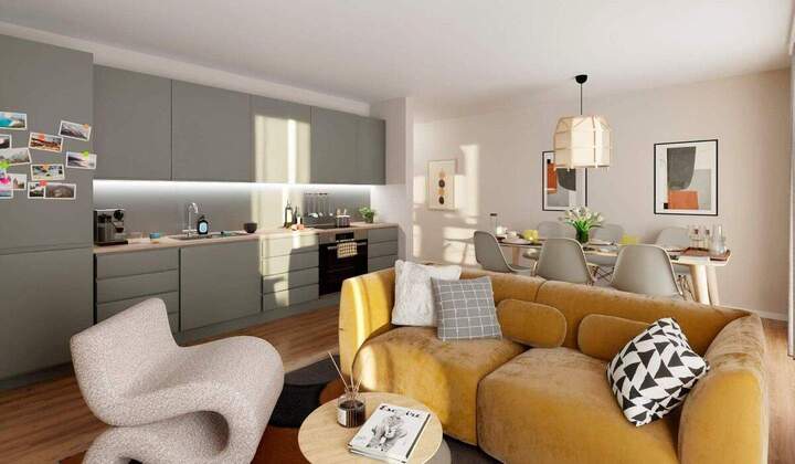 Entdecken Sie diese moderne Wohnung mit drei Zimmern und einem großzügigen Wohnbereich.