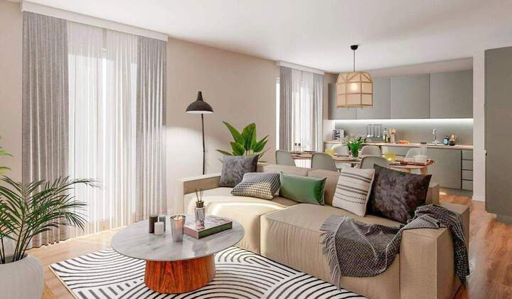 Diese helle Wohnung im Erdgeschoss bietet Raum für Komfort und Gemeinschaft.